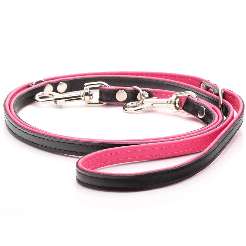 ANCOL Black Leather Lead with silver diamantes and a pink back and inside handled as in picture, This lead is versatile and durable with a strong leather strap and padded leather inside.