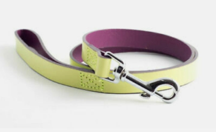 Black leather collar and lead set with green inside the lead handle and inside of the collar