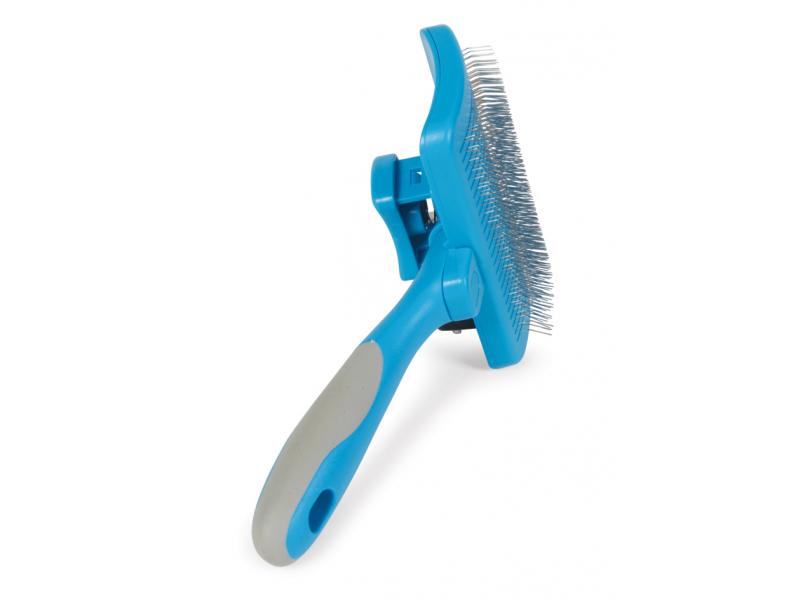 Stainless steel curve pins give a gentle touch,removes dead hair from undercoat and top coat and loosens tangles.