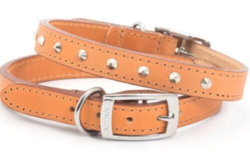 Ancol Dog Collar Heritage Leather Studded Collar . The Ancol Heritage Studded Leather Collar is a timeless and hardy accessory for your dog. This collar incorporates a time-honoured design punctuated with nickel studs for a classic 'dog collar' finish. Each collar is stamped with the 'Heritage' mark that indicates Ancol's leather history and assures our customers the collar has been made by our skilled workforce in the UK. This robust collar is made from bridle leather making it supple and strong, ensuring longevity and your dog's comfort. The collar is completed with a satin-finish buckle and D-ring for easy removal and lead attachment. Colour: Light Brown Size: Small 26-36 CM |