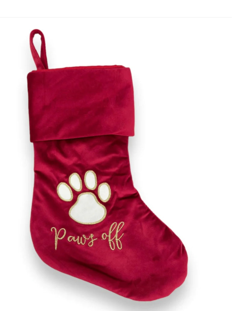 Make your dog feel like part of the family with this red velvet Christmas stocking.