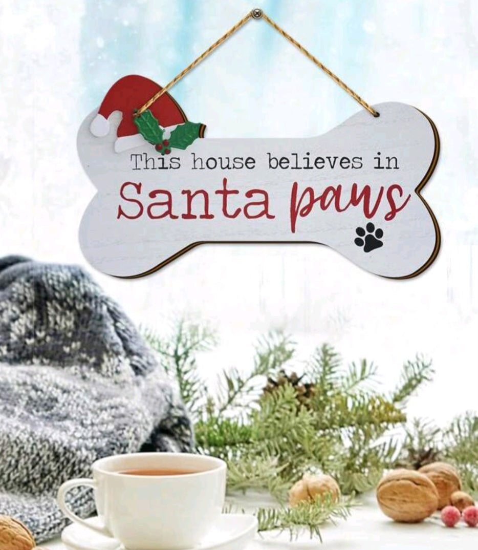 Bone shaped Christmas sign ' This house believes in Santa paws'